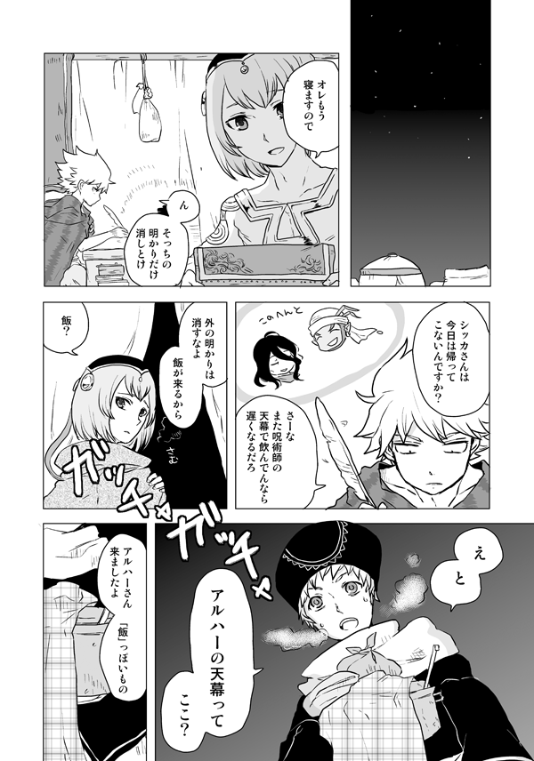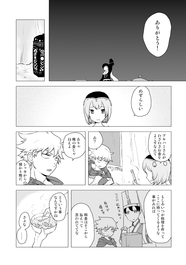 託してあったお金はとある呪術の依頼金だとか。 アルハーとシッカとラティファ君は同じ天幕住まいです。 カナたん脱退後がどうなったかとても気になりますが、無事に目的地にたどり着けるといいな…!