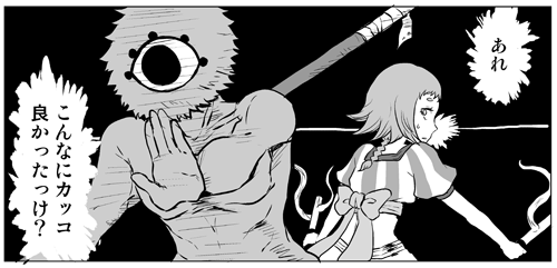 7RTされたら、「あれこんなにカッコ良かったっけ?」という台詞を使ったミト1コマ漫画を描きます。