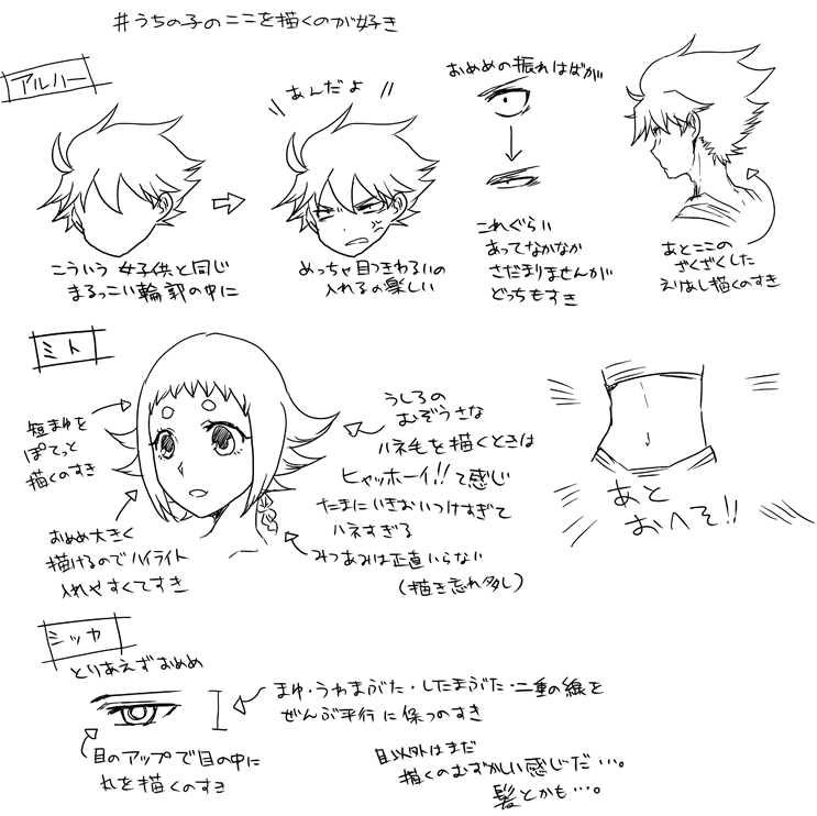 「#うちの子のここを描くのが好き」タグより殴り書きですが。