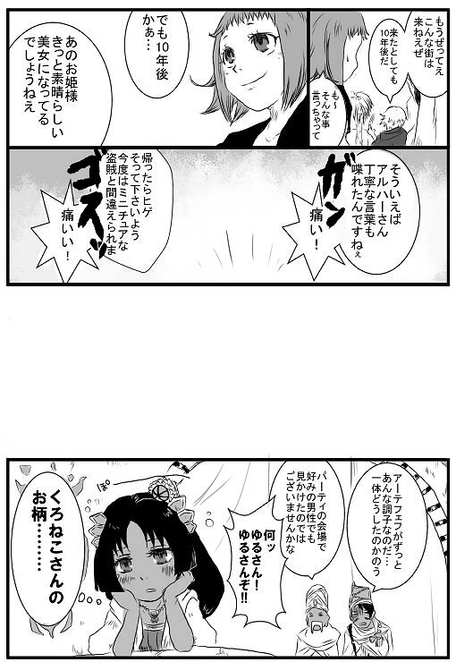 そんなこんなでパーティも終わる頃には出てこれましたとさ! アルハーのとこで飲んだジュースについてるピンは、姫様の髪飾りになりました。