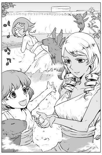 すごくカピバラみたいなのがたかってきてますが、温泉ルフとか居てもいいんじゃないかなあと思いました。×温泉からできたルフ ○温泉に入りたがるルフ