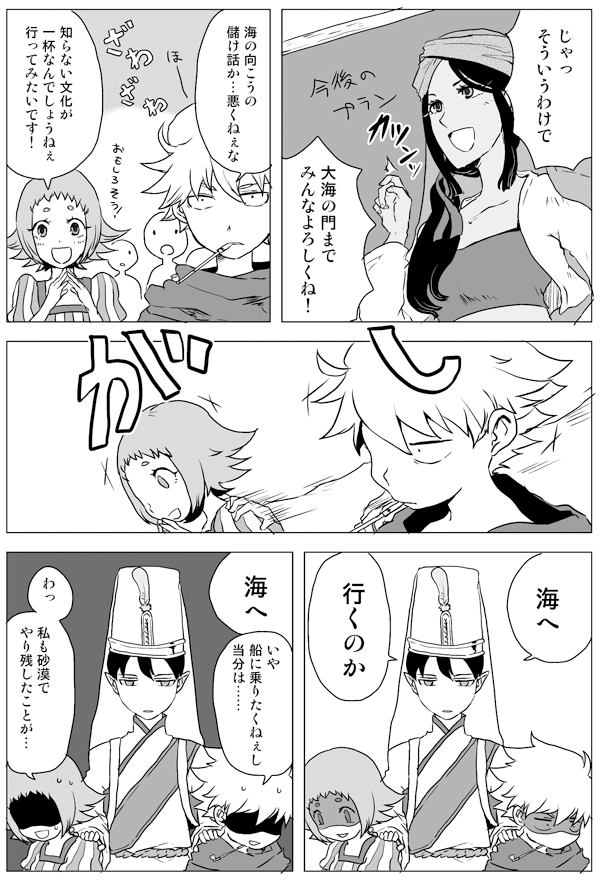 最後の街、大海の門から砂漠の外に行く人もいるんだろうなー。うちの三人は↑のような理由で砂漠に留まると思います。その後の事は今のうちに考えておこうな…!
