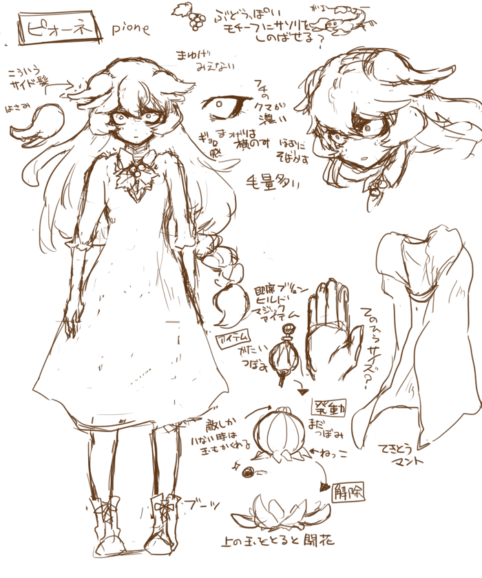 ざっくりキャラデザとイメージ画的なピオーネは蠍モチーフっ子でした(蠍をイタリア語でスコルピオーネ)