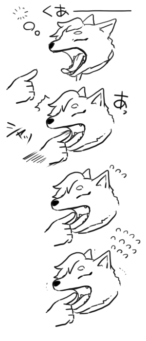 口の中に指を突っ込まれた時の反応みたいなタグ with 犬。
