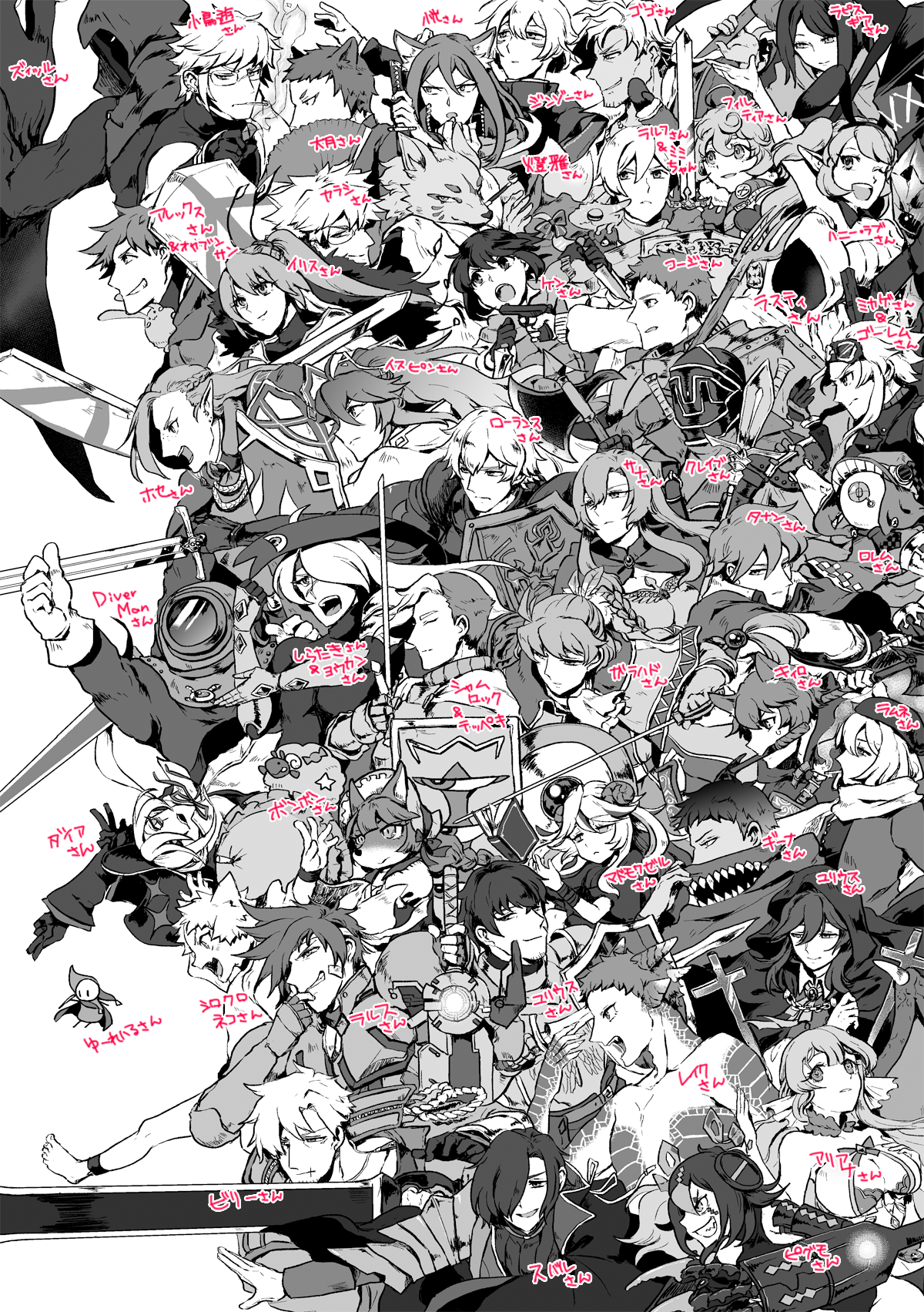 タンクやってると普段ほかのタンクさんと冒険する事あまりないので、絵だけでもご一緒できないかなーと考えて描きました。
