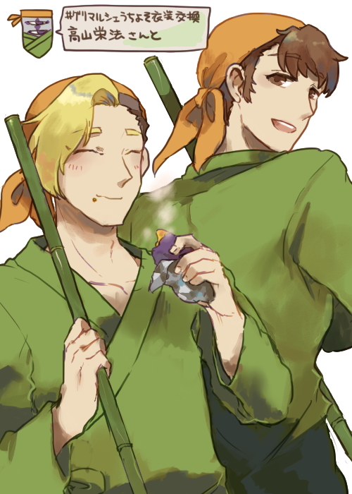 高山栄法さんお借りしました!服も!すっかり観光にきた外国人感ある。高山さん、年下だけど驚きの背の高さ!