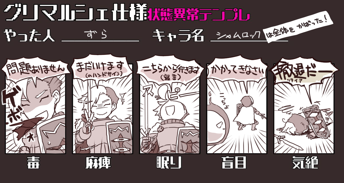 状態異常テンプレお借りしました!かばうのおかげでさまざまな状態異常に陥りがち。