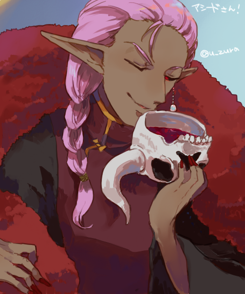 褐色肌は塗ってて超楽しい!しゃれこうべの盃でお酒を飲む姿が様になりすぎて流石です。