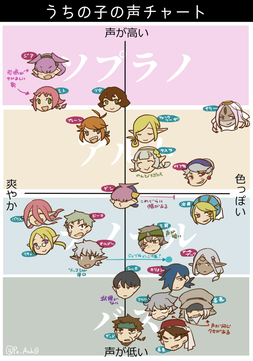 声チャートお借りしました!CVとかあまり決まってないけどだいたいこんな?