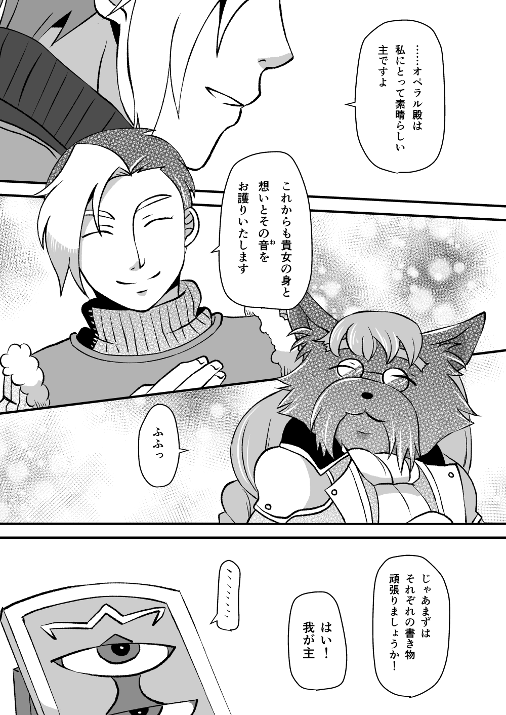 主従の思い出をネタにしたので、きみさんの絵でそれが出力されるありがたさ。ほわっとした空気の演出もうまいなあ!